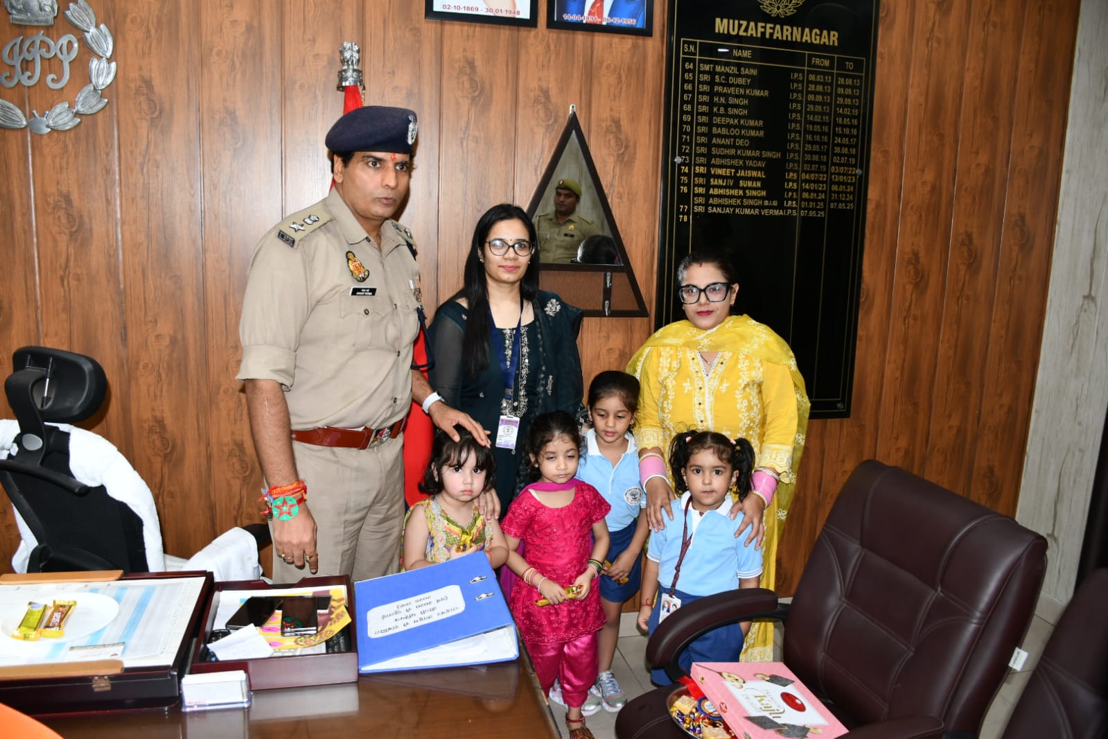 मुज़फ्फरनगर,7 अगस्त।रक्षाबंधन के पावन पर्व पर आज मुजफ्फरनगर पुलिस कार्यालय में एक भावुक और प्रेरणादायक दृश्य देखने को मिला, जब विभिन्न स्कूलों की नन्हीं-मुन्नी छात्राओं ने वरिष्ठ पुलिस अधीक्षक संजय कुमार वर्मा को राखी बाँधकर रक्षाबंधन पर्व की शुभकामनाएँ दीं।