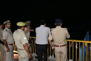 वरिष्ठ पुलिस अधीक्षक संजय कुमार वर्मा ने देर रात्रि थाना रामराज क्षेत्र अंतर्गत मुज़फ्फरनगर-बिजनौर बैराज एवं आस-पास के बाढ़ प्रभावित इलाकों का स्थलीय निरीक्षण किया। निरीक्षण के दौरान उन्होंने मौके की वस्तुस्थिति का जायज़ा लेते हुए संभावित खतरे वाले स्थानों और प्रभावित गांवों का अवलोकन किया।