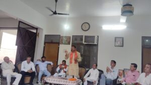 मुजफ्फरनगर। भारतीय जनता पार्टी के हर घर तिरंगा अभियान के तहत पिन्ना मंडल में मंडल प्रभारी श्रीमोहन तायल ने सभा को संबोधित किया। उन्होंने कार्यकर्ताओं, पदाधिकारियों और आम नागरिकों से घरों व प्रतिष्ठानों पर तिरंगा फहराने और जनजागरण हेतु तिरंगा यात्रा निकालने का आह्वान किया। आजादी की 78वीं वर्षगांठ पर शहीदों को नमन करते हुए तायल ने कहा कि आजादी हमें संघर्ष और बलिदानों से मिली है, जिसे हमें राष्ट्रभक्ति के संकल्प के साथ संजोकर रखना है।