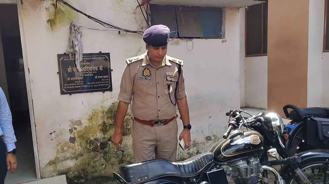 चरथावल थाने का आकस्मिक निरीक्षण के दौरान एसएसपी ने पुलिसकर्मी की बुलेट का कटवाया चालान।