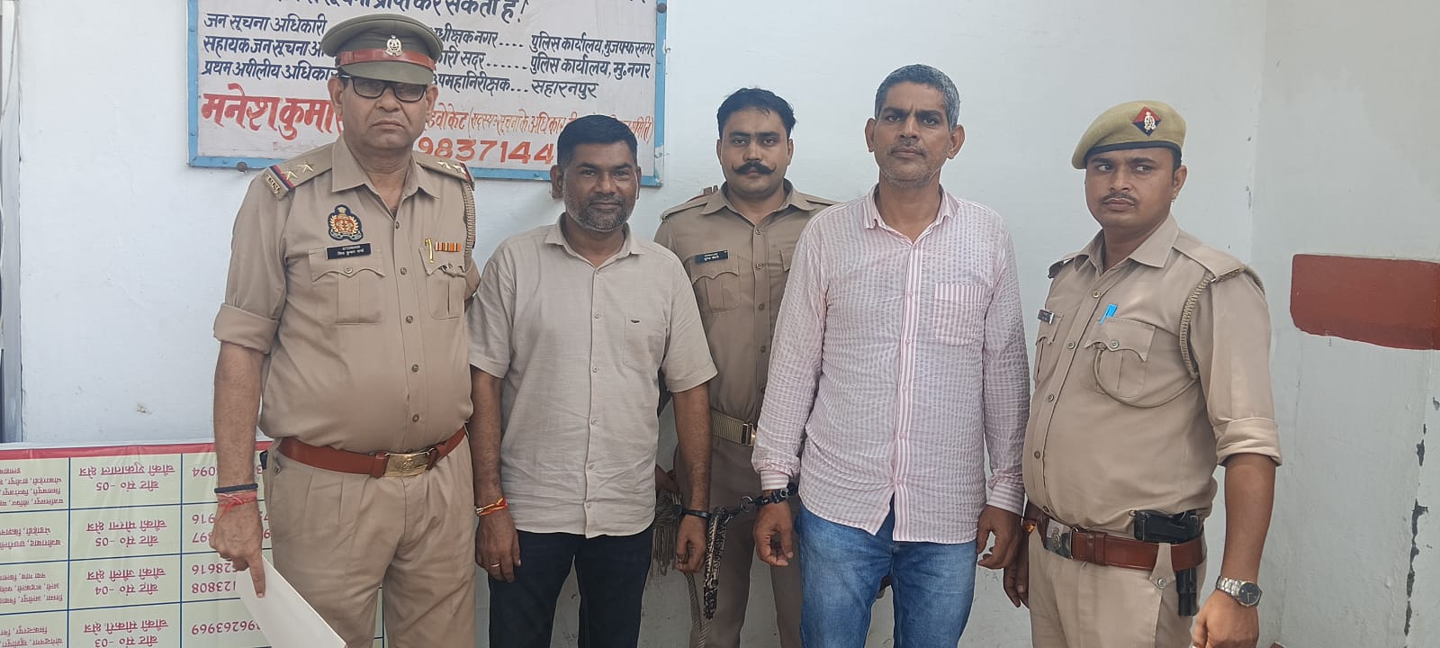 मुजफ्फरनगर जनपद के थाना भोपा क्षेत्र में 16 वर्ष पहले हुई हत्या के मामले में फरार चल रहे,चालीस चालीस हजार रुपए के दो इनामी बदमाश धीरज पुत्र रिशिपाल तथा नीरज पुत्र रिशिपाल को भोपा पुलिस व एसटीएफ संयुक्त टीम ने गिरफ्तार किया है इनामी बदमाशों की तलाश में लगी एसटीएफ को सूचना,मिली कि मुजफ्फरनगर के थाना भोपा क्षेत्र में हुई एक हत्या के मामले में 16 साल से फरार चल रहे अभियुक्त धीरज एवं नीरज अपना नाम बदलकर धीरज अहमदाबाद तथा नीरज जयपुर में रह रहे है।