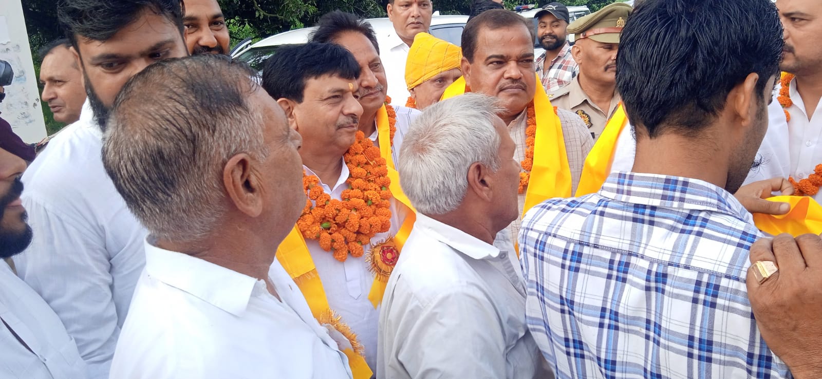 गांव में आगमन पर ग्राम प्रधान शोभित पुंडीर एवं उत्तर प्रदेश पुलिस के सेवानिवृत्त सब इंस्पेक्टर बृजपाल सिंह ने शहीद स्मारक पर पहुंचकर सभी अतिथियों का फूल मालाओं से स्वागत किया।