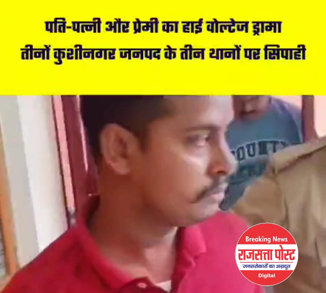कुशीनगर जिले से चौंकाने वाली घटना सामने आई है। यहां तैनात एक पुलिसकर्मी ने अपनी पत्नी को उसके कथित प्रेमी के साथ संदिग्ध हालात में देख लिया। तीनों ही पुलिस विभाग में कार्यरत हैं। मामला बढ़ने पर थाने तक पहुंचा और अब पति ने अपनी ही पत्नी और साथी जवान पर जान से मारने की साजिश रचने का आरोप लगाया है।