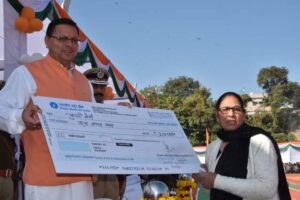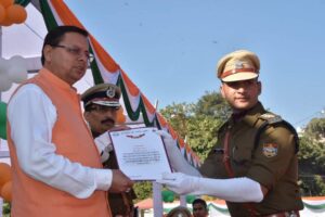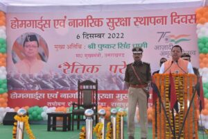 देहरादून।मुख्यमंत्री पुष्कर सिंह धामी ने मंगलवार को देहरादून में होमगार्ड्स एवं नागरिक सुरक्षा के स्थापना दिवस कार्यक्रम में बतौर मुख्य अतिथि प्रतिभाग करते हुए रैतिक परेड का निरीक्षण किया। इस अवसर पर उन्होंने होमगार्ड्स एवं नागरिक सुरक्षा की स्मारिका का विमोचन किया और ‘पहल’ एप का शुभारंभ किया। उन्होंने सेवा पृथक होमगार्ड श्रीमती कुन्ती देवी को होमगार्ड कल्याण कोष से ₹01 लाख एवं ड्यूटी के दौरान मृत होमगार्ड जवान श्री तिलक राज मौर्य की पत्नी श्रीमती प्रीति को ₹02 लाख का चेक प्रदान किया। उन्होंने कुमाऊँ कमाण्डेन्ट, होमगार्ड श्री ललित मोहन जोशी को सराहनीय सेवाओं के लिए केंद्र सरकार से प्राप्त गृह रक्षक एवं नागरिक सुरक्षा सम्मान से सम्मानित करने के साथ ही विभिन्न क्षेत्रों में सराहनीय कार्य करने वाले जवानों को प्रशंसा प्रमाण पत्र भी प्रदान किए।
