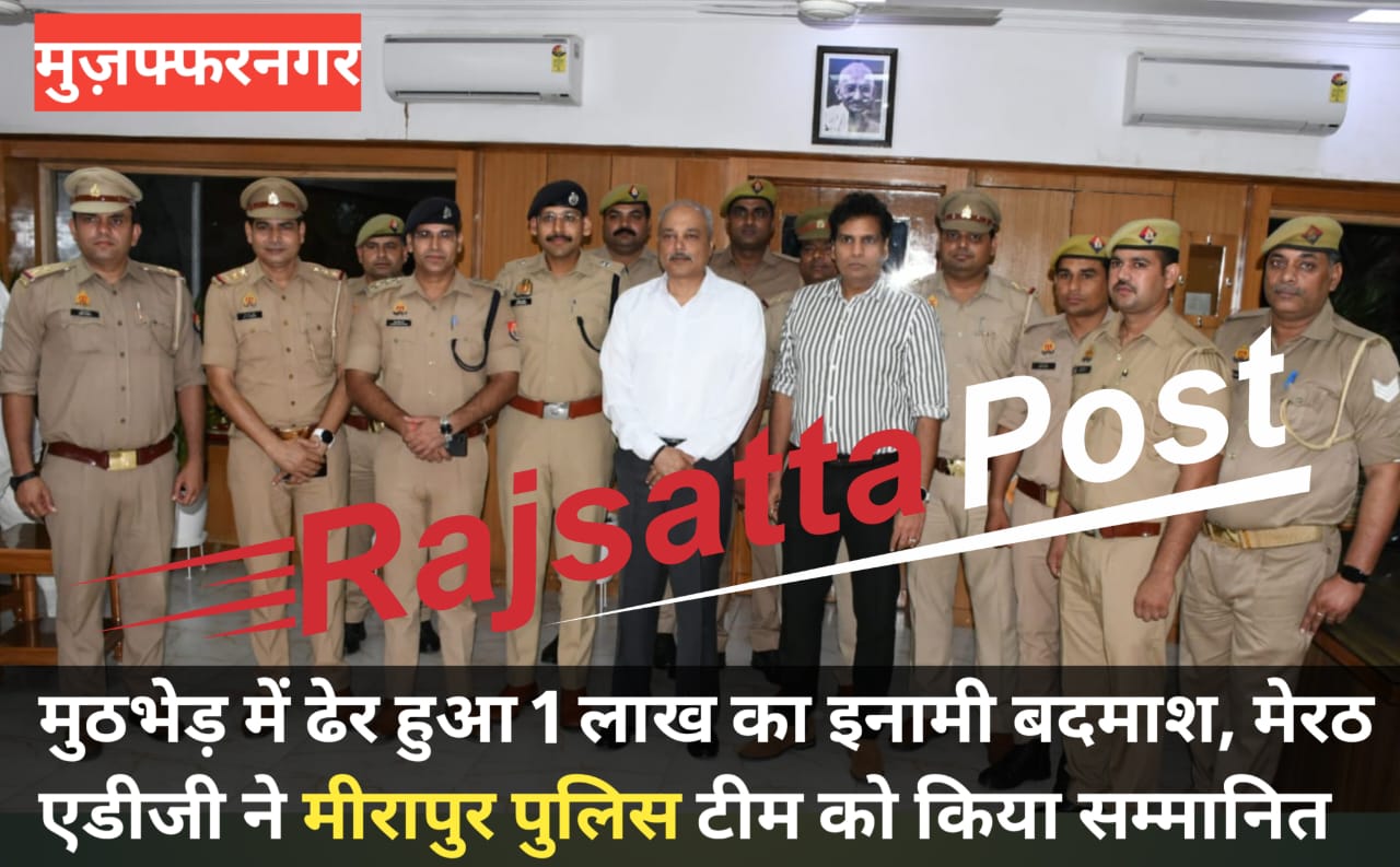 मुठभेड़ में ढेर हुआ 1 लाख का इनामी बदमाश, मेरठ एडीजी ने मीरापुर पुलिस टीम को किया सम्मानित