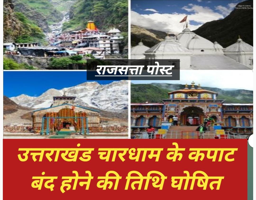 उत्तराखंड चारधाम के कपाट बंद होने की तिथि घोषित