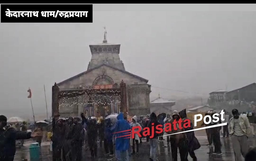 जनपद रुद्रप्रयाग स्थित पवित्र केदारनाथ धाम में रविवार दोपहर करीब 1:30 बजे सीजन की पहली बर्फबारी हुई। कुछ ही देर में धाम और आसपास की पहाड़ियां बर्फ की सफेद चादर से ढक गईं। अचानक हुई बर्फबारी से तापमान में गिरावट आई और केदारपुरी क्षेत्र में कड़ाके की ठंड ने दस्तक दे दी। श्रद्धालुओं और यात्रियों ने इस बर्फबारी का आनंद लिया और बाबा केदार के जयकारों से पूरा धाम गूंज उठा।