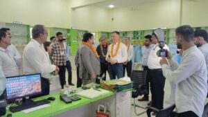 मुज़फ़्फ़रनगर।दिनांक 14 अक्टूबर 2025, मंगलवार को रूस से आए विदेशी प्रतिनिधिमंडल एकरोन कम्पनी के वाईस प्रेसिडेंट (ओवरसीज) डिमेट्री खबरात, वरिष्ठ वैज्ञानिक एलेक्शी लिसिन और मार्केटिंग हेड अन्ना डोरोफीवा, मोहनदास बिनानी, आईपीएल दिल्ली ऑफिस से डा. यू.एस. तेवतिया, डा. भानू प्रताप एवं लखनऊ ऑफिस से धर्मेंद्र तालियान ने प्रधानमंत्री किसान समृद्धि केंद्र, रोहाना कलां का निरीक्षण किया। इस दौरान प्रतिनिधिमंडल ने केन हारवेस्टर और ड्रोन तकनीक की आधुनिक विधियों का अवलोकन किया।