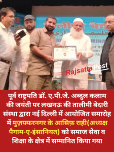 नई दिल्ली में तालीमी बेदारी संस्था द्वारा आयोजित सेमिनार में मुज़फ्फरनगर के आसिफ़ राही को सम्मानित किया गया