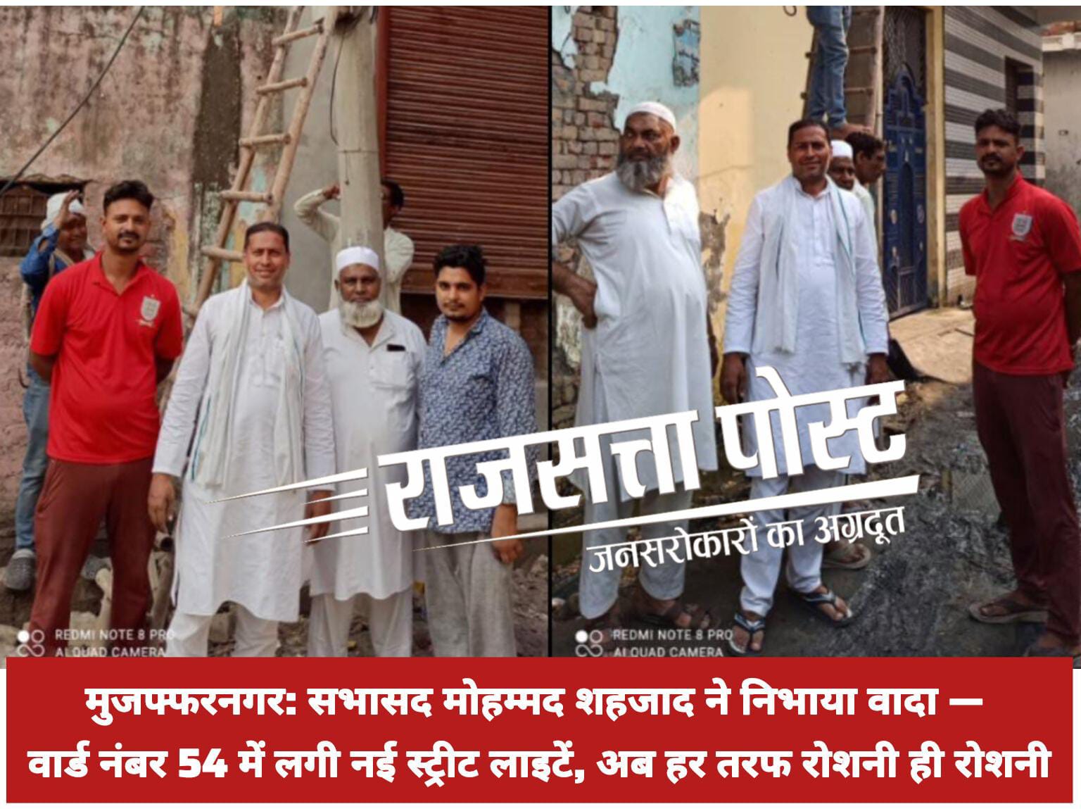 🌟 मुजफ्फरनगर: सभासद मोहम्मद शहजाद ने निभाया वादा — वार्ड नंबर 54 में लगी नई स्ट्रीट लाइटें, अब हर तरफ रोशनी ही रोशनी