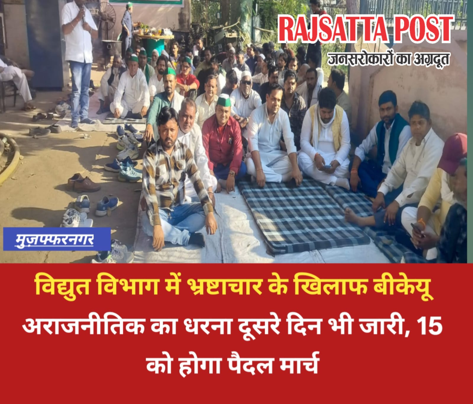 विद्युत विभाग में भ्रष्टाचार के खिलाफ बीकेयू अराजनीतिक का धरना दूसरे दिन भी जारी, 15 को होगा पैदल मार्च