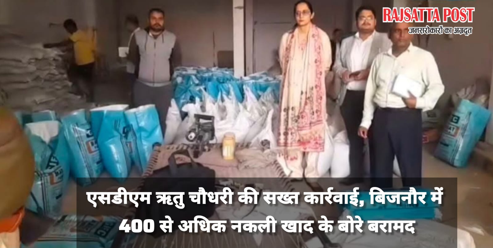 एसडीएम ऋतु चौधरी की सख्त कार्रवाई, बिजनौर में 400 से अधिक नकली खाद के बोरे बरामद