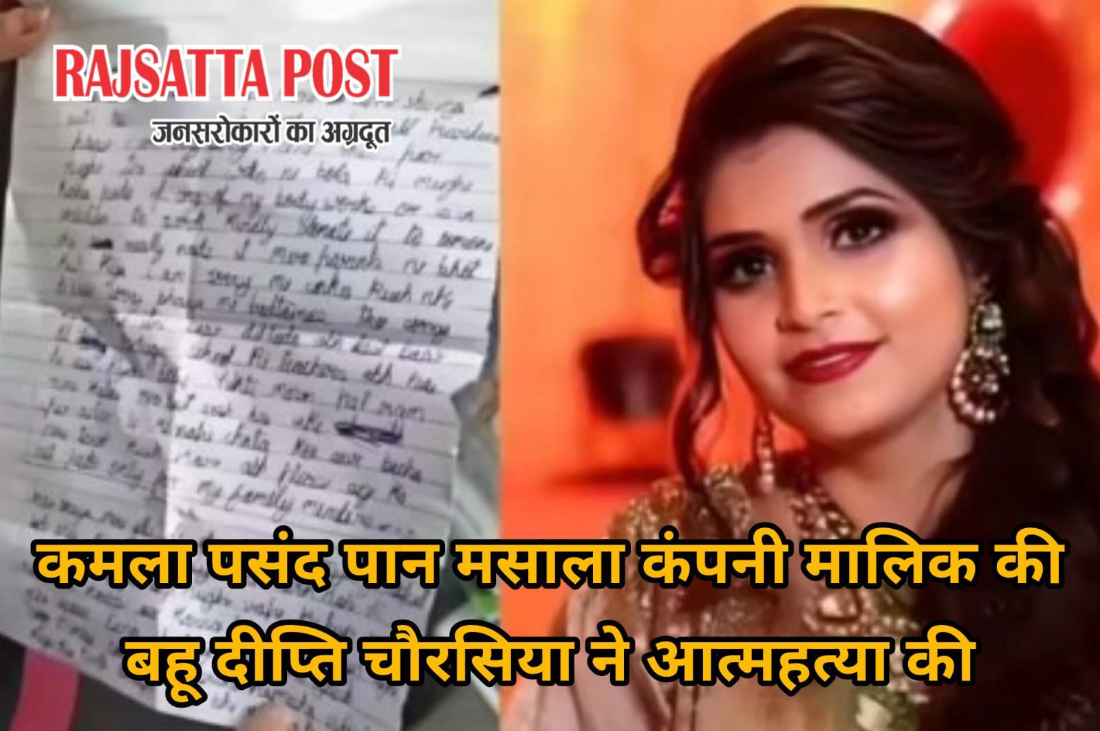 कमला पसंद पान मसाला कंपनी मालिक की बहू दीप्ति चौरसिया ने आत्महत्या की — सुसाइड नोट में दर्द भरी पंक्तियां