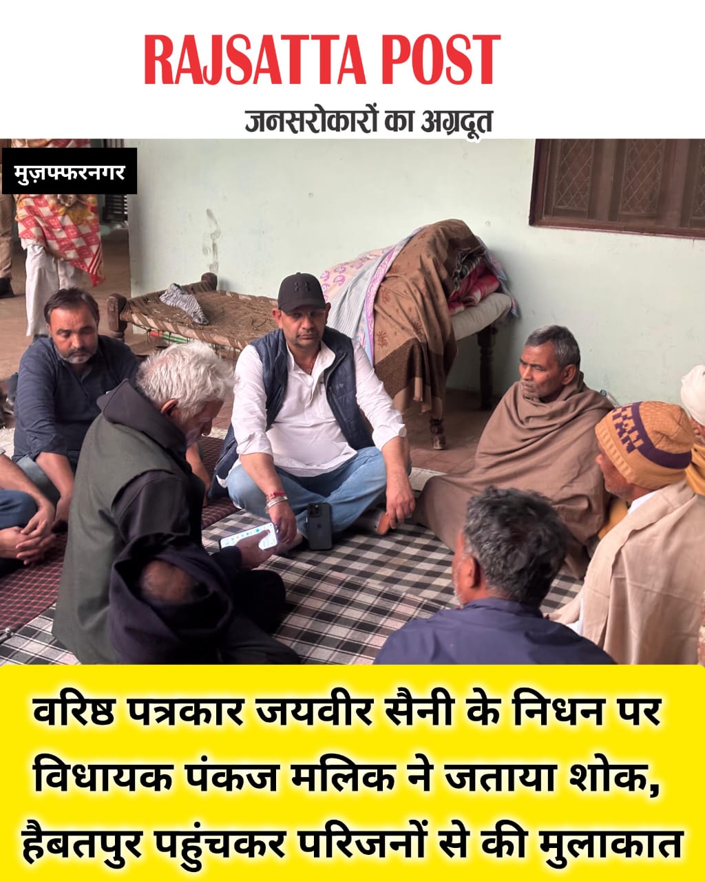 वरिष्ठ पत्रकार जयवीर सैनी के निधन पर विधायक पंकज मलिक ने जताया शोक, हैबतपुर पहुंचकर परिजनों से की मुलाकात