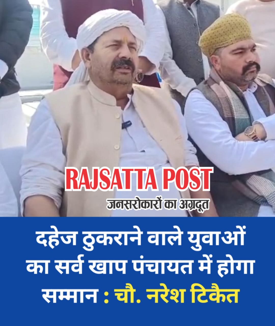 दहेज ठुकराने वाले युवाओं को मिलेगा सर्व खाप पंचायत में सम्मान : चौ. नरेश टिकैत
