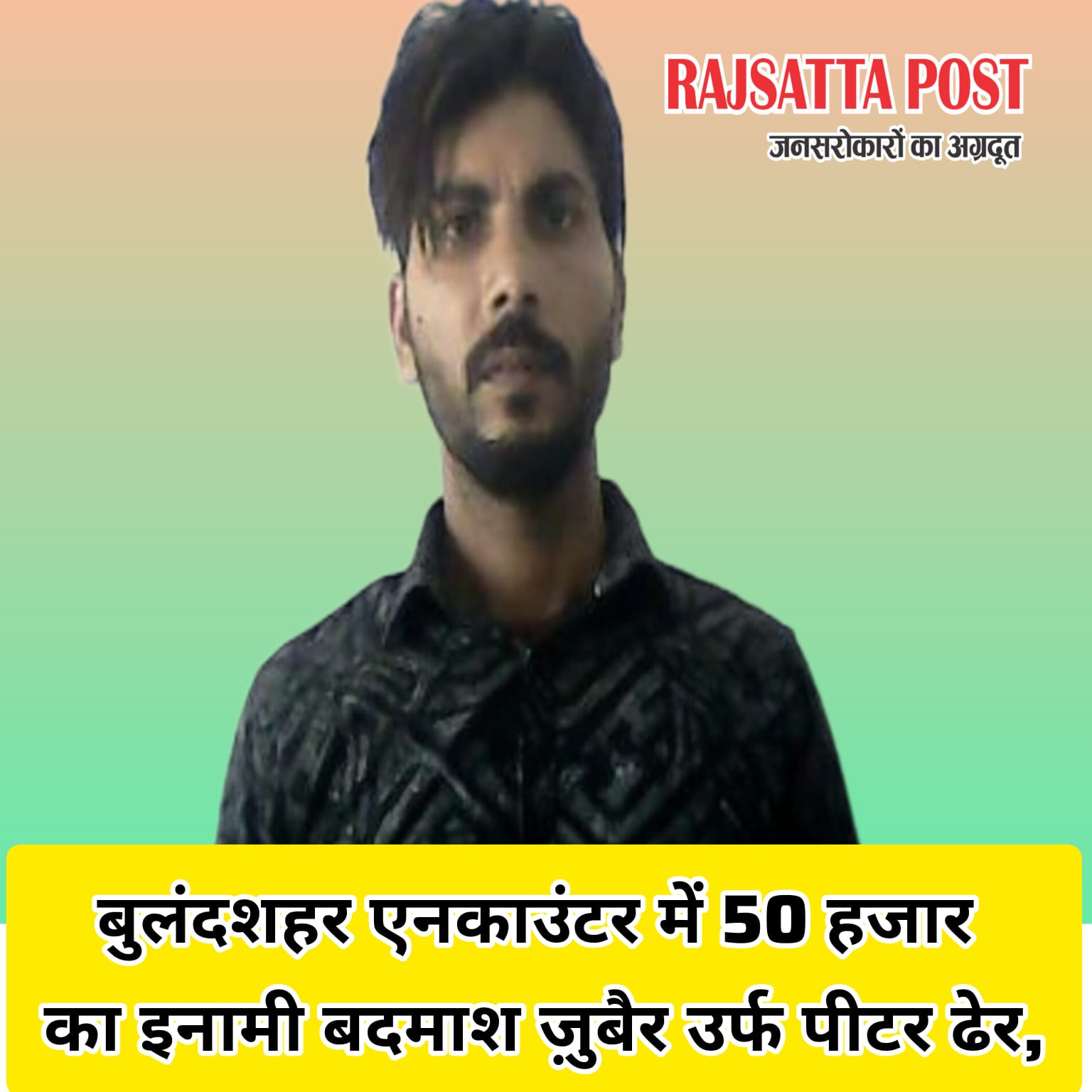 बुलंदशहर में देर रात पुलिस मुठभेड़ के दौरान 50 हजार रुपये का इनामी बदमाश ज़ुबैर उर्फ पीटर मारा गया। मुठभेड़ में बदमाशों की ओर से की गई फायरिंग में एक पुलिस सिपाही घायल हो गया, जिसे उपचार के लिए अस्पताल में भर्ती कराया गया है।