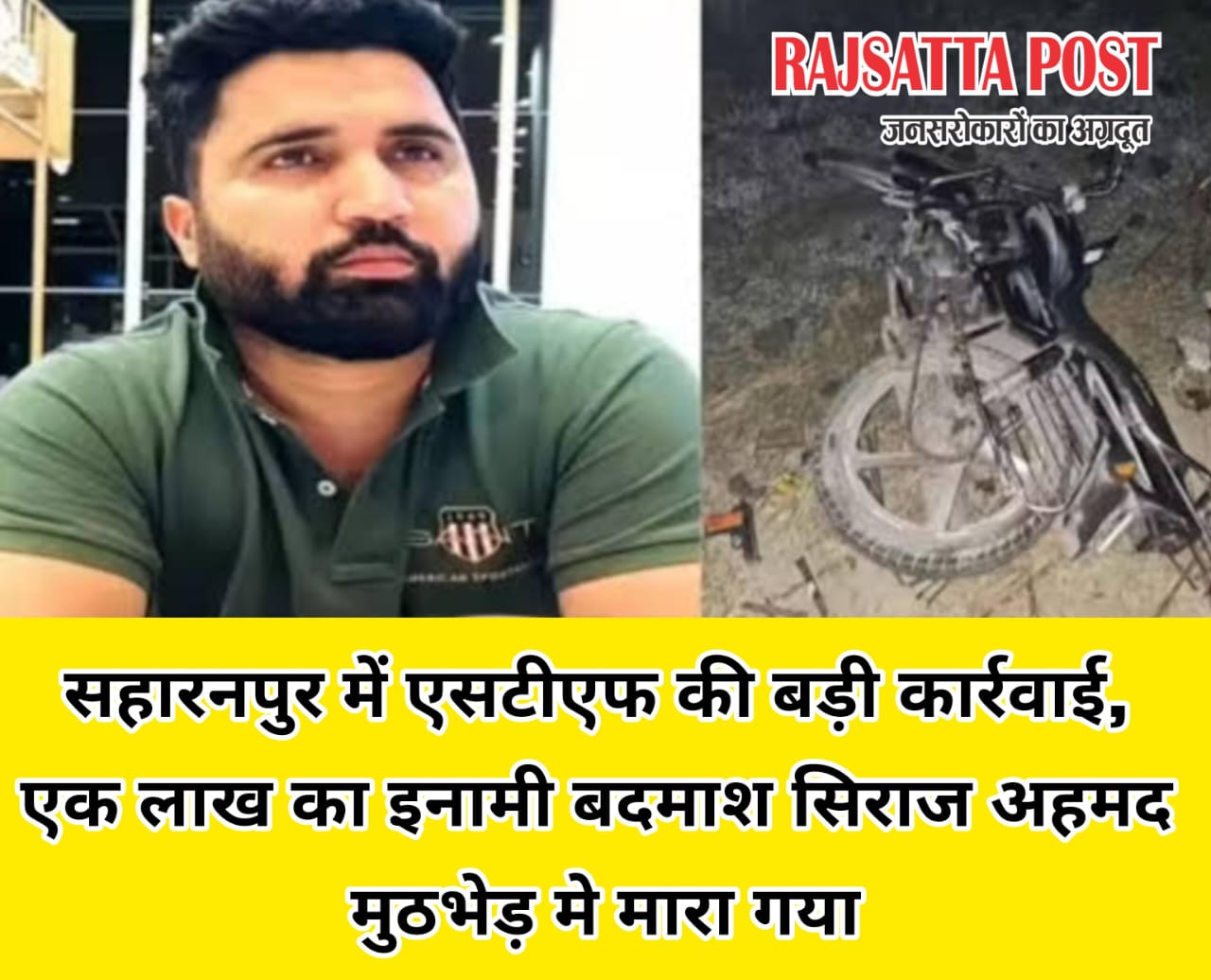 सहारनपुर में एसटीएफ की बड़ी कार्रवाई, एक लाख का इनामी बदमाश सिराज अहमद मुठभेड़ मे मारा गया