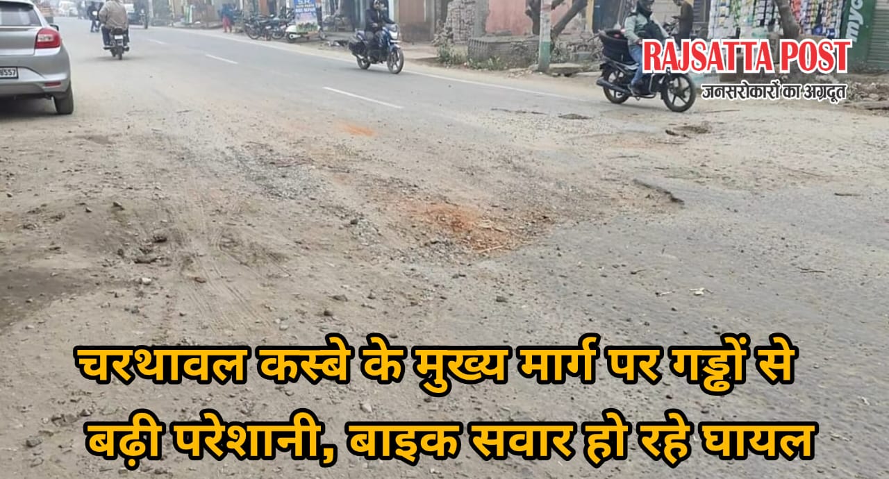 चरथावल कस्बे के मुख्य मार्ग पर गड्ढों से बढ़ी परेशानी, बाइक सवार हो रहे घायल
