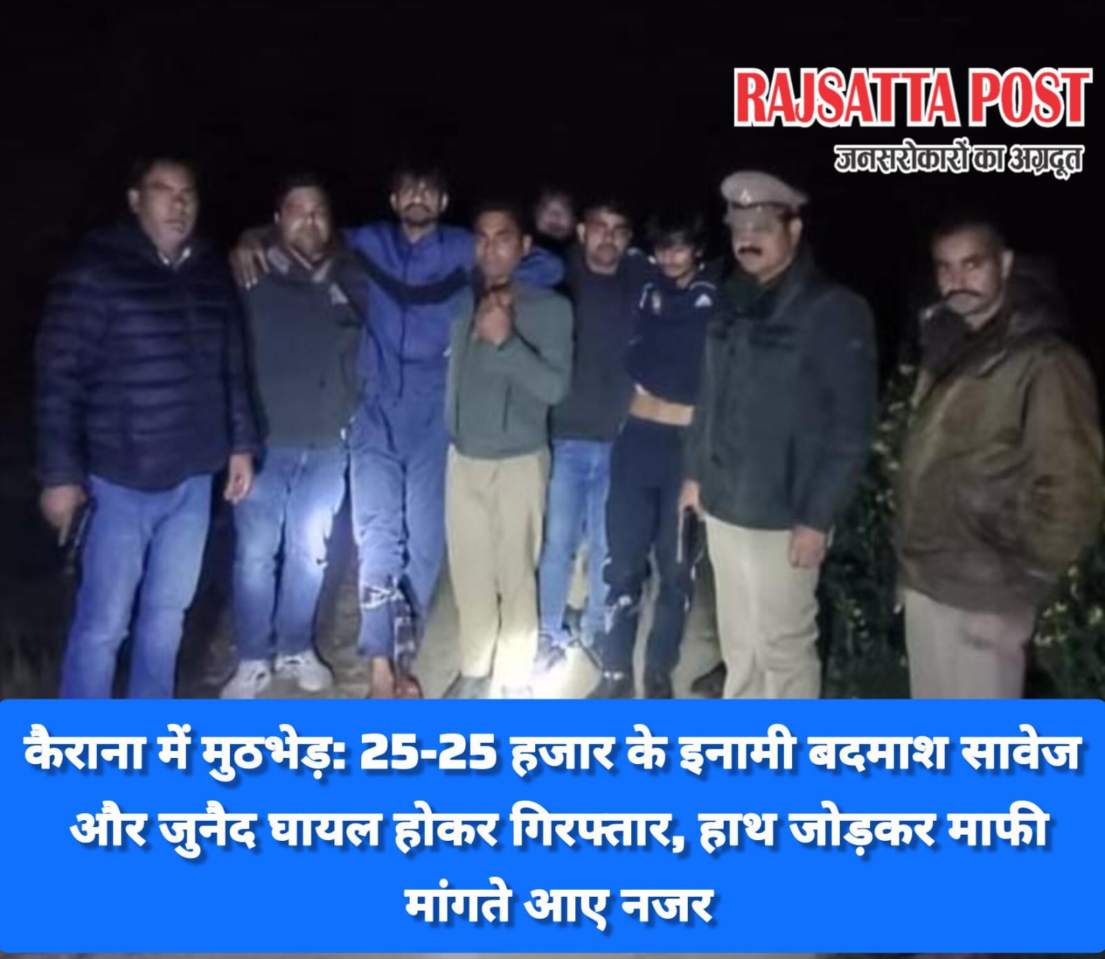 कैराना में मुठभेड़: 25-25 हजार के इनामी बदमाश गिरफ्तार, प्रभारी निरीक्षक समयपाल अत्री की अगुवाई में बड़ी कार्रवाई