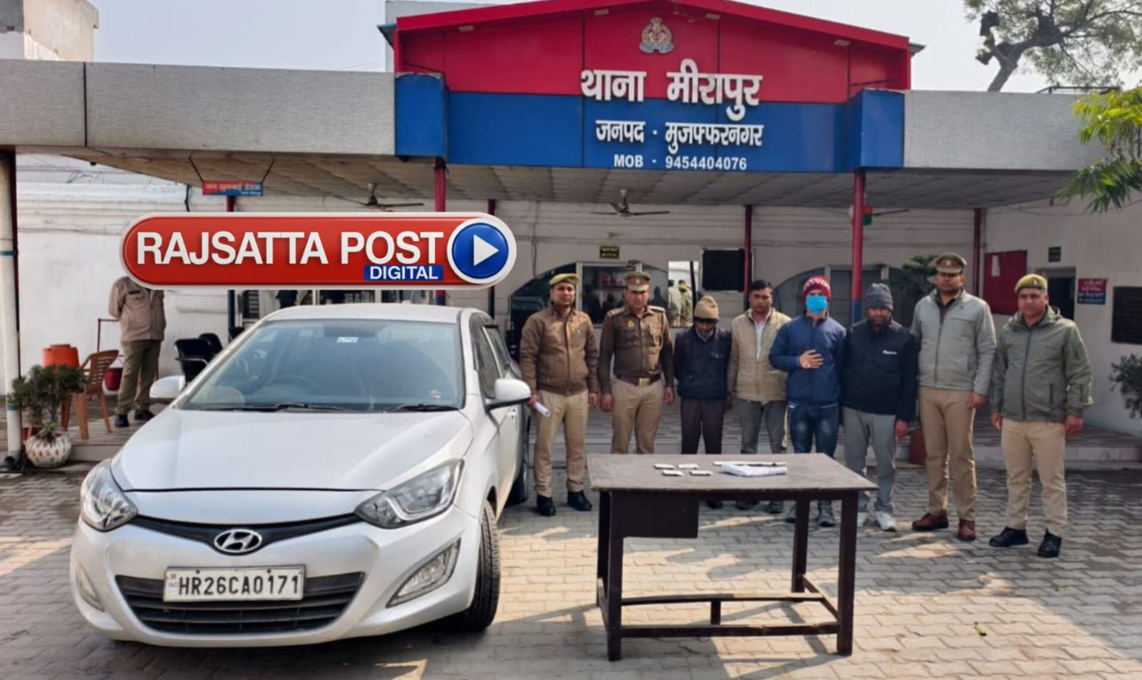 मुज़फ्फरनगर जनपद के थाना मीरापुर पुलिस ने एटीएम कार्ड बदलकर धोखाधड़ी करने वाले चार शातिर अभियुक्तों को गिरफ्तार किया है। पुलिस ने अभियुक्तों के कब्जे से 8 एटीएम कार्ड, 10,200 रुपये नगदी, आई-20 कार और अवैध शस्त्र व कारतूस बरामद किए।