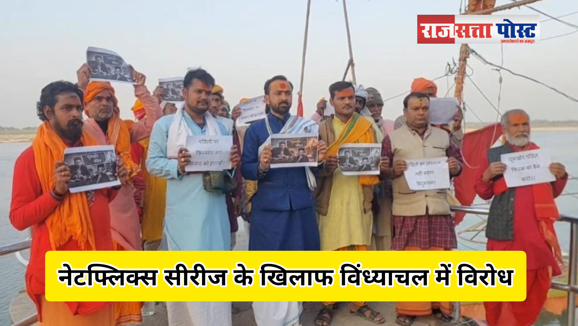 नेटफ्लिक्स की सीरीज के विरोध में विंध्याचल में उबाल, गंगाघाट पर पुरोहितों ने किया जोरदार प्रदर्शन