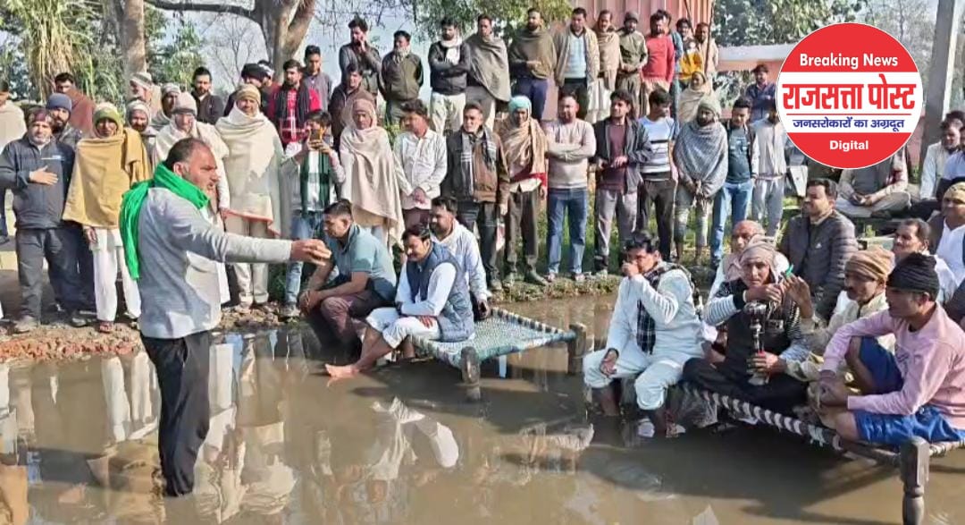 वर्षों से जलभराव से जूझ रहा सिकंदरपुर–सीकरी मार्ग, गंदे पानी में खाट डालकर ग्रामीणों का अनोखा धरना