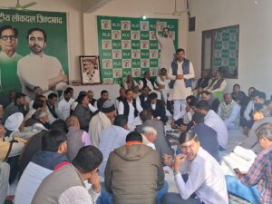 मुजफ्फरनगर। पूर्व केंद्रीय मंत्री एवं राष्ट्रीय लोक दल के संस्थापक चौधरी अजीत सिंह की जयंती के अवसर पर रालोद जिला कार्यालय में श्रद्धांजलि सभा का आयोजन किया गया। कार्यक्रम में बड़ी संख्या में कार्यकर्ता एवं गणमान्य नागरिक उपस्थित रहे। हवन के उपरांत उनके चित्र पर पुष्प अर्पित कर श्रद्धासुमन अर्पित किए गए और उनके आदर्शों पर चलने का संकल्प लिया गया।