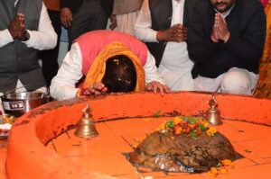 कार्यक्रम के दौरान मुख्यमंत्री ने वनखंडी महादेव मंदिर में पहुंचकर शिवलिंग पर जलाभिषेक किया और पूजा-अर्चना कर प्रदेश की सुख-शांति, समृद्धि एवं उन्नति की कामना की। मंदिर परिसर में पूजा-अर्चना के दौरान श्रद्धालुओं में विशेष उत्साह दिखाई दिया और “हर-हर महादेव” के जयघोष से पूरा वातावरण भक्तिमय हो उठा।