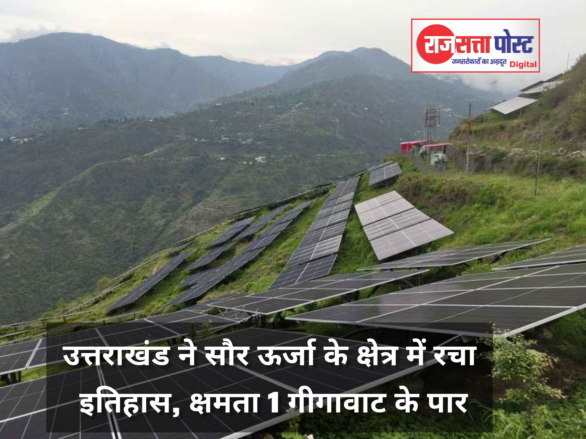 राजधानी देहरादून से मिली जानकारी के अनुसार उत्तराखंड ने हरित ऊर्जा के क्षेत्र में ऐतिहासिक उपलब्धि हासिल की है। राज्य में स्थापित सौर ऊर्जा क्षमता 1 गीगावाट (1000 मेगावाट) के आंकड़े को पार कर गई है। ताज़ा आंकड़ों के मुताबिक प्रदेश की कुल सौर ऊर्जा क्षमता 1027.87 मेगावाट से अधिक पहुंच चुकी है, जो राज्य के लिए एक बड़ी उपलब्धि मानी जा रही है।