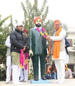 साथ ही उन्होंने गुरुनानक अकादमी परिसर में आर्टिफिशियल इंटेलिजेंस लैब का शुभारंभ एवं छात्रों को सम्मानित भी किया। मुख्यमंत्री धामी ने शहीद उधम सिंह को नमन करते हुए कहा कि शहीद उधम सिंह महान क्रांतिकारी थे, जिन्होंने जलियांवाला बाग हत्याकांड के दोषी जनरल डायर को इंग्लैंड में जाकर सभा के सामने मौत के घाट उतारा। यह हमारा सौभाग्य है कि हमारे जनपद का नाम शहीद उधम सिंह जी के नाम पर पड़ा। उन्होंने कहा कि प्रधानमंत्री श्री नरेंद्र मोदी जी ने गुरु गोविंद सिंह जी साहब के चारों शहजादों की शहादत को वीर बाल दिवस के रूप में मनाने की घोषणा कर उन्हें सच्ची श्रद्धांजलि अर्पित की है।