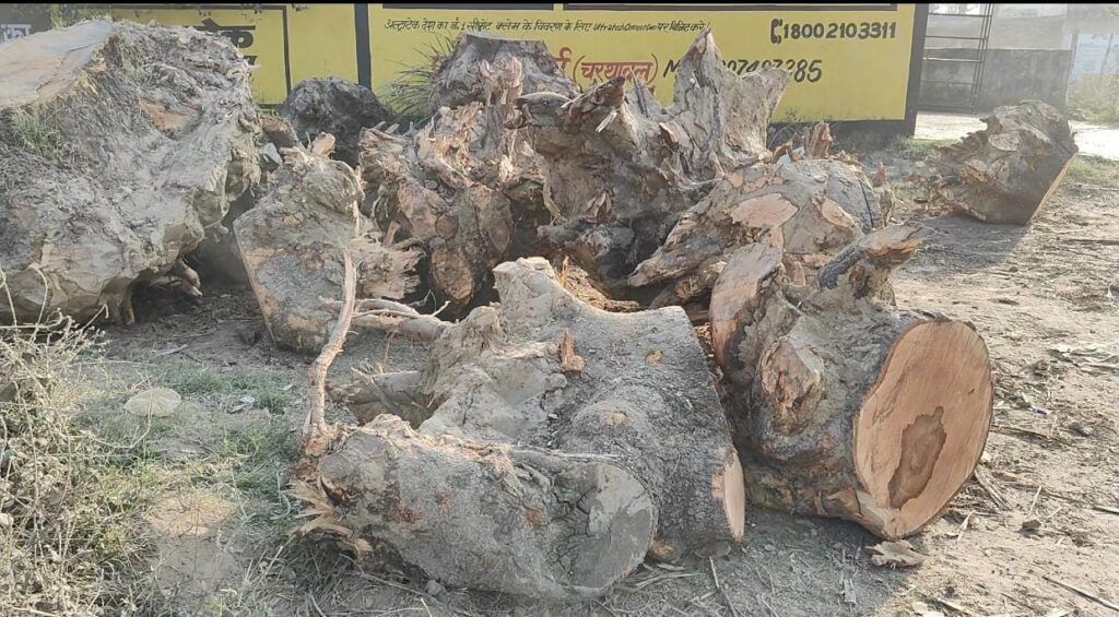 हरे-भरे आम के पेड़ों पर चल रही आरी, लक्कड़ मंडी तक पहुंच रही लकड़ी