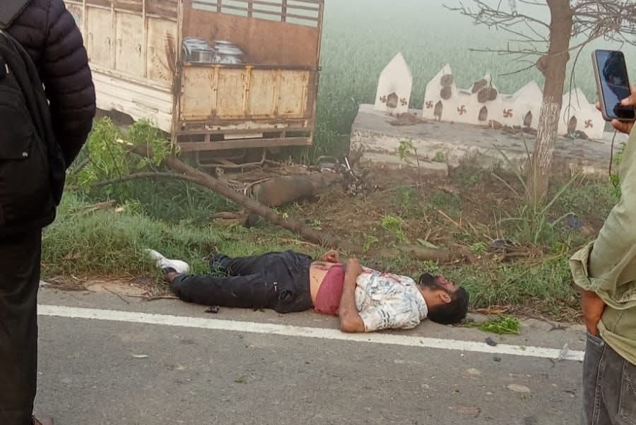 तेज रफ्तार पिकअप की टक्कर से युवक की मौके पर दर्दनाक मौत, किसान धरने पर बैठे
