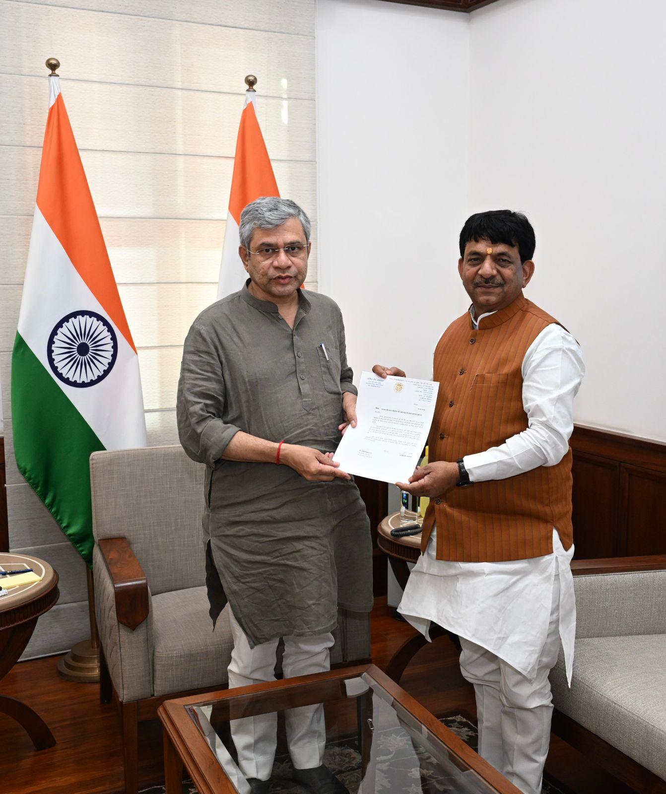 राज्य मंत्री कपिल देव अग्रवाल ने रेल मंत्री अश्विनी वैष्णव से की भेंट, पश्चिमी उत्तर प्रदेश की रेल सुविधाओं के विस्तार की रखी मांग