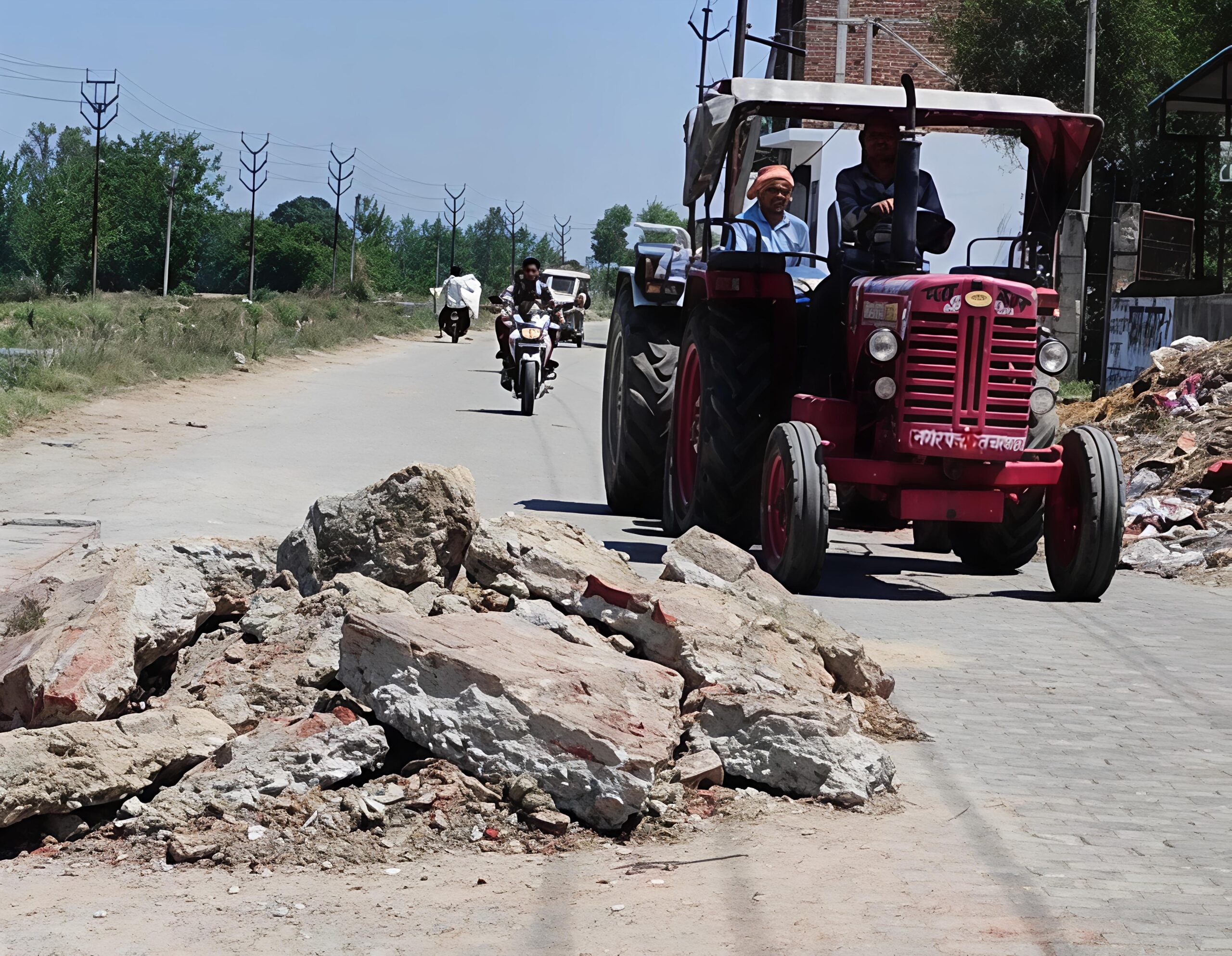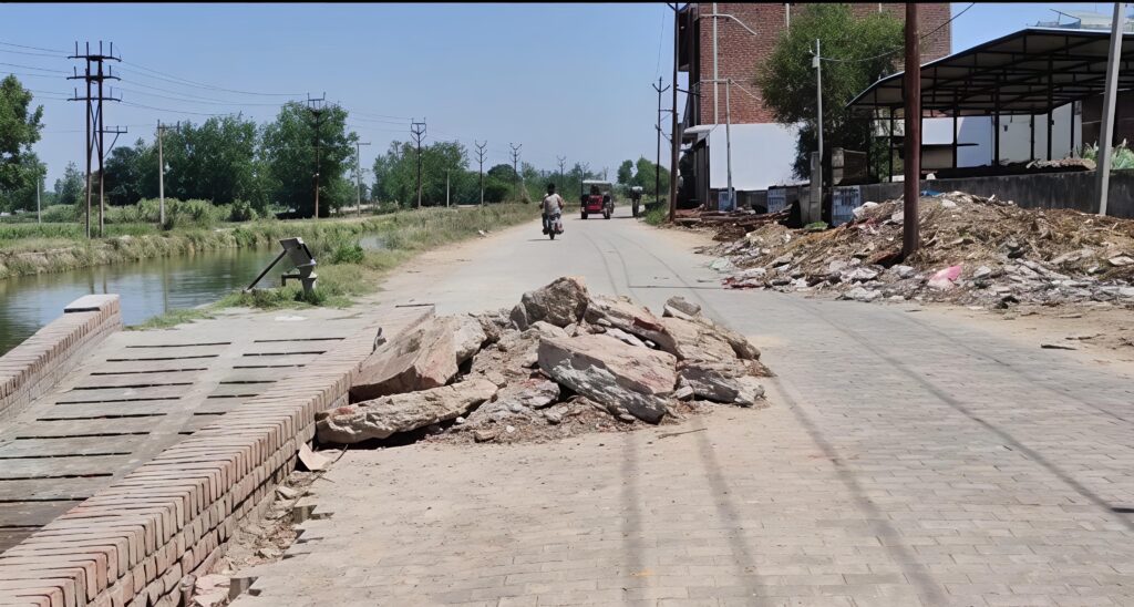 सिंचाई विभाग की बड़ी लापरवाही : सड़क पर पड़ा मलबा हादसों को दे रहा न्यौता, आवागमन में भारी परेशानी