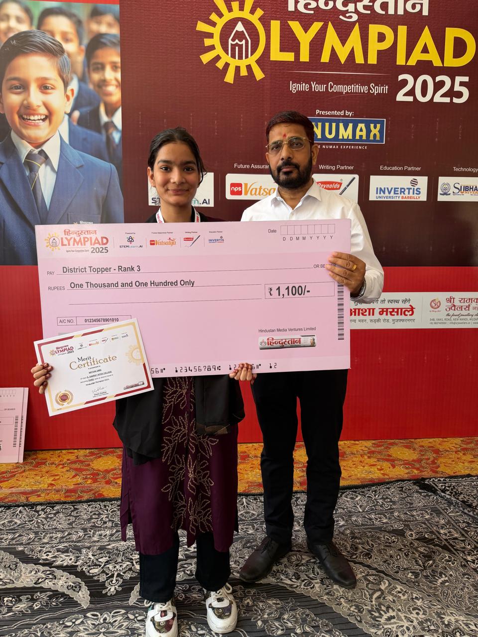 सम्राट इंटर कॉलेज की छात्रा ने हिंदुस्तान ओलंपियाड में जिले में तृतीय स्थान प्राप्त किया