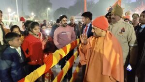 श्रद्धालुओं से मिले सीएम योगी, बच्चों को दुलारा