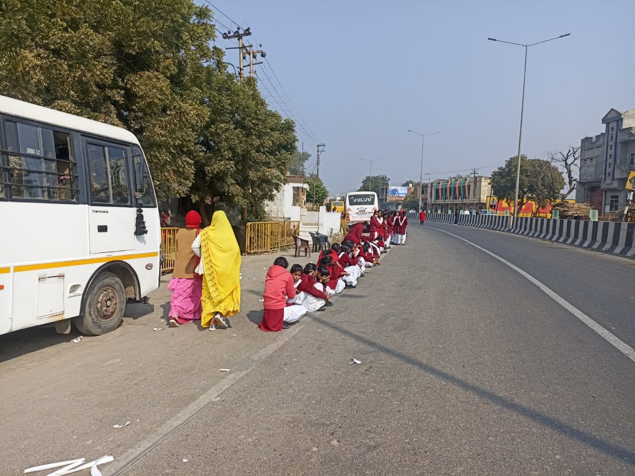 मानव श्रृंखला बनाने के लिए सरकारी व गैर सरकारी स्कूलों के छात्र सुबह नौ बजे से पहुंचना आरंभ हो गये थे। एक बजे तक वह शपथ दिलाए जाने का इंतजार करते रहे। बच्चे कभी थक कर बैठ जाते तो कभी खड़े हो जाते। उनके पानी और खाने की व्यवस्था का भी इंतजाम अध्यापकों द्वारा किया गया। जिलाधिकारी के द्वारा उनके पास पहुंचने पर छा़त्रों ने राहत क सांस ली।