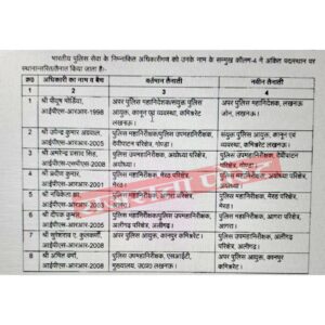 उत्तर प्रदेश की सरकार ने देर रात 8 आईपीएस अधिकारियों के किए तबादले