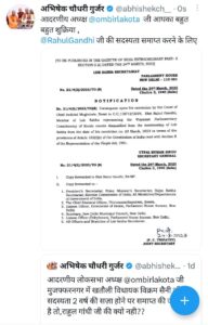 चौधरी अभिषेक गुर्जर ने लोकसभा स्पीकर का कांग्रेस नेता राहुल गांधी की लोकसभा सदस्यता रद्द करने पर ट्वीट करते हुए जताया आभार!!